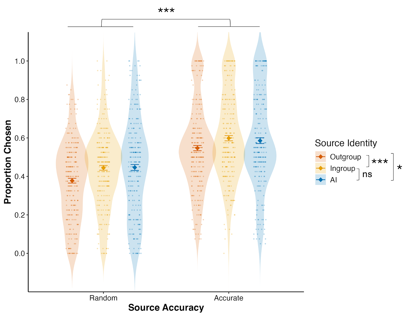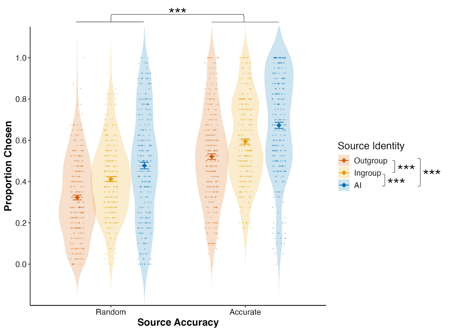 We conducted a fact-checking experiment where people first learned how accurate different sources were. People were perfectly capable of identifying which sources were competent, regardless of whether they were in-group, out-group, or AI.