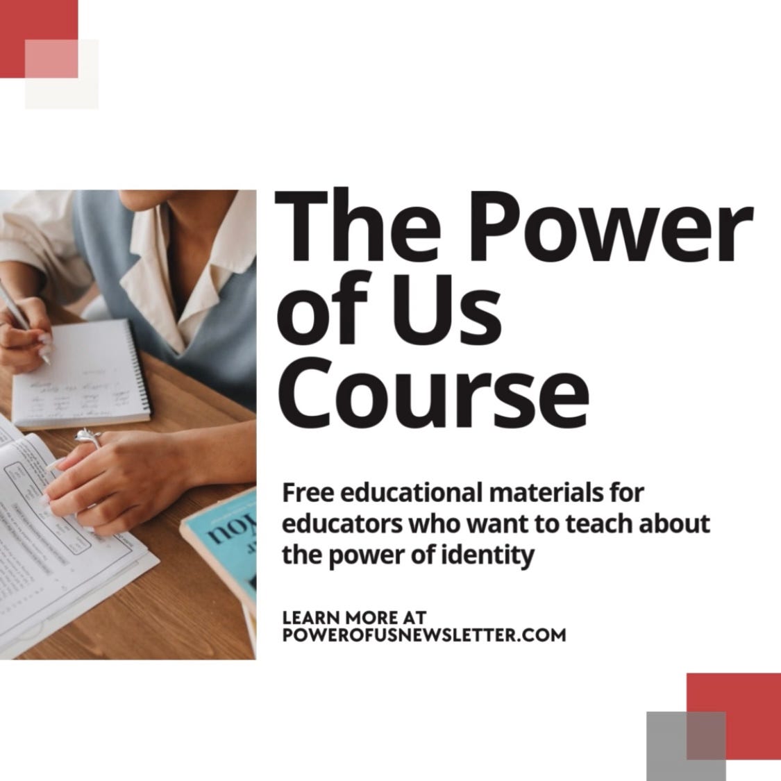 We will also offer a free paid subscription to the Power of Us newsletter for any educator who assigns our book in their class.