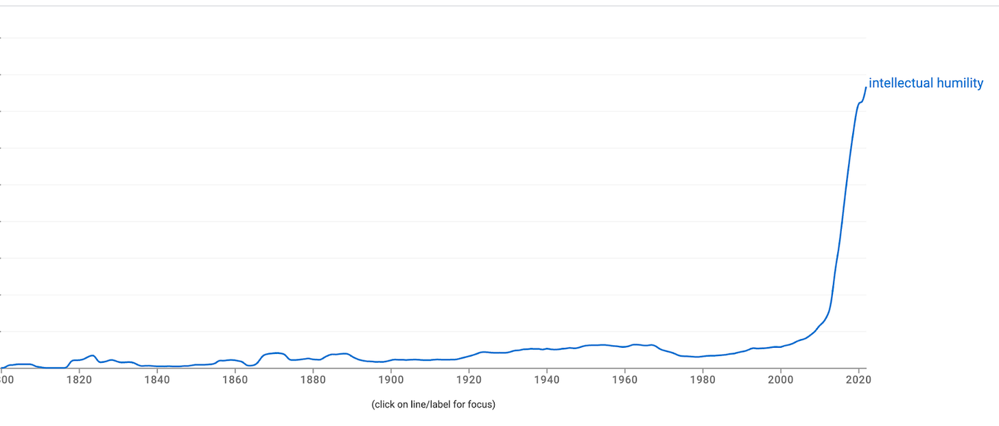 In the past decade, there has been an explosion of interest on the topic of intellectual humility(see the figure below). This had led to the development of at least 10 new scales to measure intellectual humility and hundreds of new studies on the topic. If you agree with statements like “I welcome different ways of thinking about important topics” and disagree with statements like “I believe my ideas are superior to others’ ideas” then you would be considered an intellectual humble individual.